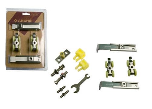 - В комплект входит: 2 стальные каретки с роликами на шариковых подшипниках, нижний поводок , крепежный комплект, 2 ограничителя, инструкция по сборке.